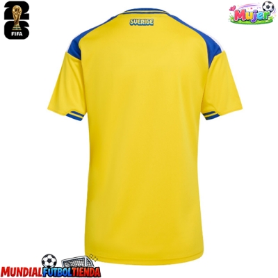 Camiseta Suecia Primera Equipación Replica Mundial 2026 para mujer mangas cortas