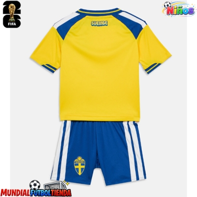 Camiseta Suecia Primera Equipación Replica Mundial 2026 para niños mangas cortas (+ Pantalones cortos)