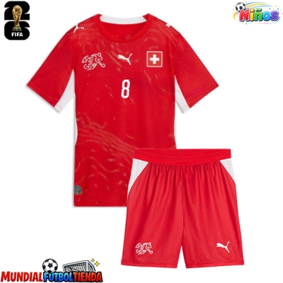 Camiseta Suiza Remo Freuler #8 Primera Equipación Replica Mundial 2026 para niños mangas cortas (+ Pantalones cortos)
