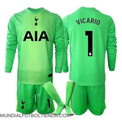 Camiseta Tottenham Hotspur Guglielmo Vicario #1 Portero Primera Equipación Replica 2025-26 para niños mangas largas (+ Pantalones cortos)